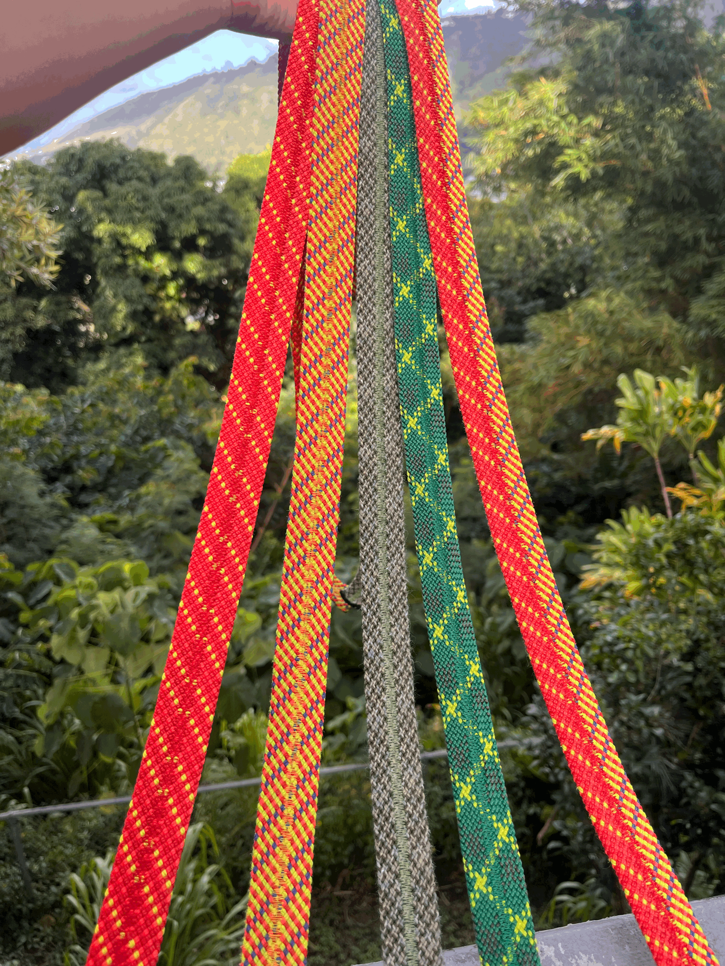 Started in the heart of O’ahu, we are committed to upcycling retired materials into high-quality products. We are gathering ropes from Oahu and other islands to help recycle materials on the islands, as well as collecting from gyms on the mainland. We strive to help eliminate waste and give back to the climbing community, and our mission is to use every bit of the retired ropes we receive. We are continuously experimenting with other upcycled materials to recycle even more.